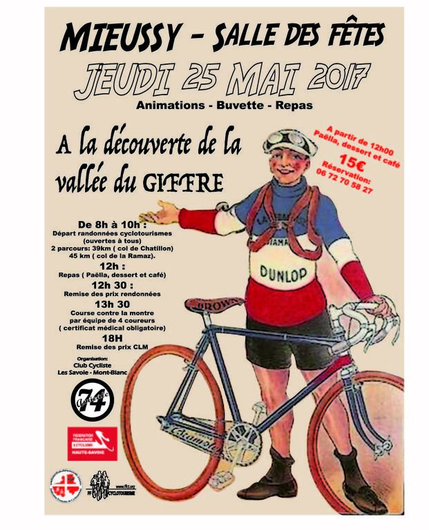 Un contre-la-montre par équipes de 4 est organisé à Mieussy le jeudi 25/05 prochain dans le cadre de la journée du vélo.